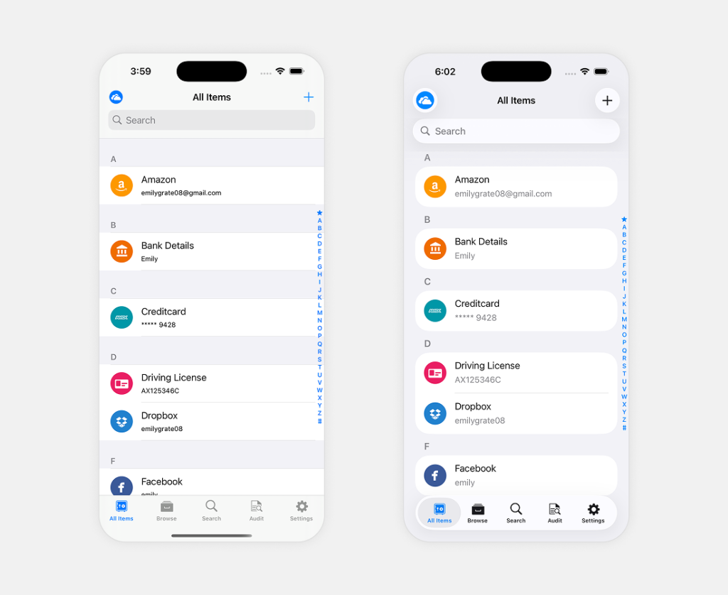 iOS 26 introduces a refreshed visual direction across Apple devices with cleaner layers, softer shapes, and a subtle sense of depth throughout the interface. To keep Enpass aligned with this updated environment, we’re rolling out a refreshed UI that brings the app closer to the look and motion of iOS 26.